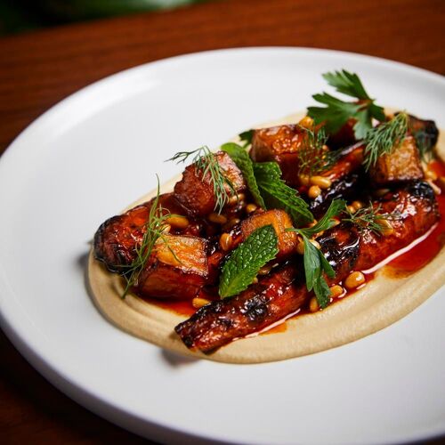 If a luxury spa ran a restaurant, it would probably look something like Ardor. Cushy white velvet and leather booths, white and beige staff uniforms, and enough verdant greenery to rival a small forest match the equally chic aesthetic at its parent venue, the West Hollywood EDITION hotel. The prices are high too, not that any hotel guests would even notice. But know that there is plenty of substance and care packed onto this vegetable-forward menu. Tandoor carrots with hummus and paprika vinaigrette or grilled dukkah-crusted ahi tuna with yogurt make for satisfying, clean eating. Dry-aged lamb and steaks cater to heavier appetites, and no meal is complete without a tower of tempura onion rings and at least one dessert (try the mojito pie).