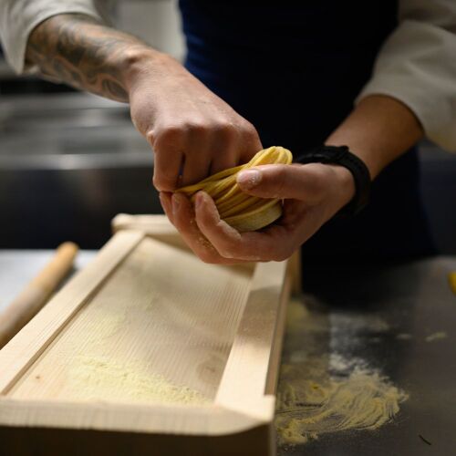 Separated from a street in the centre of Salerno by an inner courtyard, this restaurant is a peaceful oasis with comfortable chairs arranged on a modern veranda (which opens almost completely in summer) and in an equally elegant dining room. The cuisine is imaginative and appealing, with excellent fish and seafood served in modern, interesting recipes. The menu also includes a delicious selection of raw dishes.
