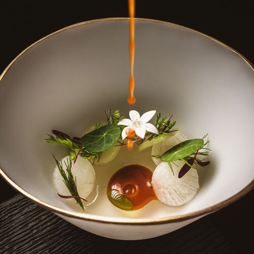 One of the gourmet dining options at the luxury Royal Hideaway Corales Beach hotel, San-Hô showcases truly fascinating fusion cuisine with a creative and personal touch which elevates this style of cooking to another level. This is achieved by combining, in occasionally highly surprising ways, culinary influences from Japan, Peru and the Canary Islands. The talented chefs at the helm, Adrián Bosch and Eduardo Domínguez (winners of the Canary Islands’ best chef award in 2012 and 2016 respectively), demonstrate their skill on two enticing tasting menus (Esencia and San Hô), as well as a concise à la carte for those who prefer to order individual dishes. Seating is either at a large counter, where the chefs cook in front of guests, in a contemporary dining room with panoramic windows, or on the pleasant terrace overlooking the garden and the sea.