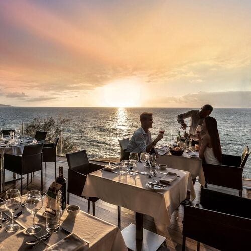 A splendid steakhouse located close to the entrance to the Loro Parque zoo. This family-run restaurant is a must on the island for meat-lovers given its choice of top-quality meat, with the advantage of many being aged on the premises. Make sure you try Brunelli's steak tartare, its signature speciality, or one of its superb cuts of grilled meat (Uruguayan beef entrecôte, Nebraskas Black Angus T-Bone, German Simmental ribeye, Chateaubriand and Spanish Tomahawk), many of which are sold by weight and designed for two people to share. The particularly impressive picture window here overlooks the sea.