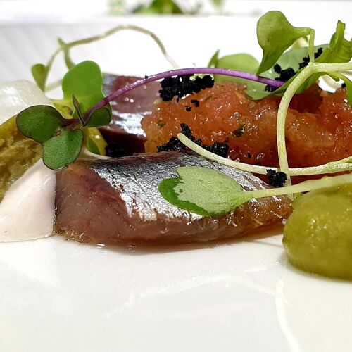 On the ground floor of a small rural hotel near Santander! Here, in a setting of simple contemporary elegance, you'll find a full menu of updated traditional cuisine, with modern details, and the option of a tasting menu, although the latter requires a reservation at least 24 hours in advance. The terrace is a delight on sunny days!