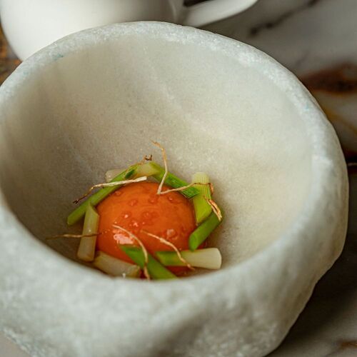 If you would like to eat in a really special setting, book a table at Casona del Judío, as it’s not every day that you get the chance to enjoy a Michelin-starred experience in an authentic 19C colonial-style property. Here, chef Sergio Bastard impresses guests by shining the spotlight on local ingredients as well as algae and herbs from the Cantabrian coast. He offers two tasting menus (Festival and Chef’s Table) on which guests can savour dishes influenced by the sea, with a fusion of textures and a constant focus on pinpoint presentation (we especially enjoyed the starters, such as the Verdina beans with red prawns, and the brine-cured squid with a black garlic macaroon). Access is via the Casona, which features a room in which the chef creates and explains his snacks before guests take their seats. Once seated, they will discover innovative culinary creations such as Salmuria, an unusual anchovy brine that he stores in small bottles and uses in sauces, in particular, to provide enhanced flavour and to add a touch of saltiness to his dishes.