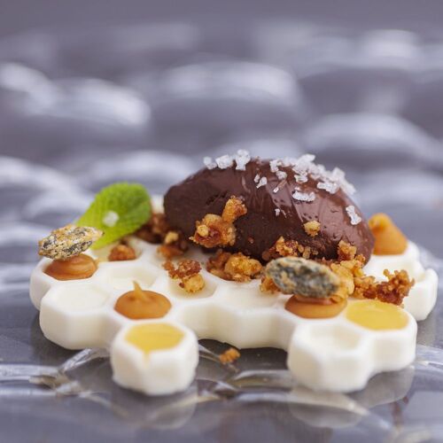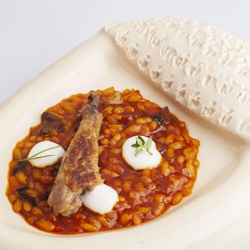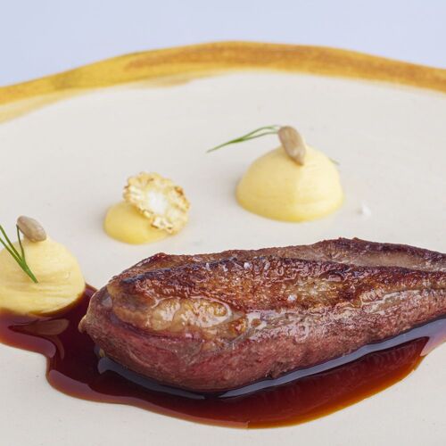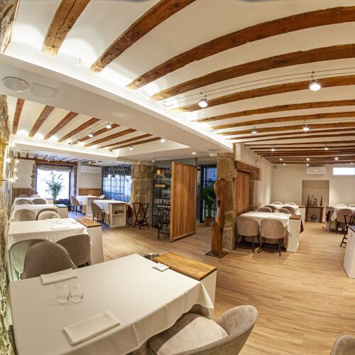 In this distinctly medieval town, a restaurant such as El Doncel definitely attracts more attention than usual thanks to its contrast between its modern cuisine and its renovated rustic setting in a large 18C house (guestrooms are also available for those wishing to stay the night). The Pérez brothers (Enrique manning the kitchen; Eduardo working as maître d’ and sommelier), have inherited a restaurant with a long culinary tradition, taking over the reins with an enthusiastic and honest approach to their work. Their cuisine is presented on two tasting menus (both accompanied by artisanally baked bread made with organic flour): one, a short version entitled Esencia y Sabor; and a second longer option called Gastronómico. At present, they are placing a focus on local salt pans, such as the restored one in Saelices (Cuenca province), hence their use of salt on a variety of guises: raw, in brine, seasonings, and marinades. The crockery, which they have designed themselves, is made by a local artisan.