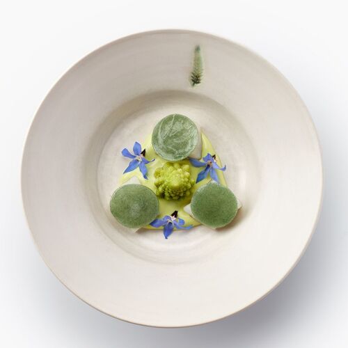 A restaurant that really leaves an impression thanks to its highly personalised working philosophy which is based around three core concepts: flavour, feeling and aesthetics. Here, chef Alejandro Serrano, who decided to return to his native Miranda de Ebro having trained at the Basque Culinary Center in Bilbao and in renowned restaurants such as Azurmendi, Coque, and DiverXO, shows that you can go against the tide and still succeed. In his elegantly contemporary eatery, enjoy dishes with a surprising focus on a traditional regional concept the chef refers to as “El Mar de Castilla” (in days gone by, it was common for people in this inland region to eat aged and salted fish). His cuisine, which he describes as “a fantasy story on the palate”, centres on two attractive and colourful tasting menus: Bosque Marino S (short version) and Bosque Marino L (long version). Not to be missed!