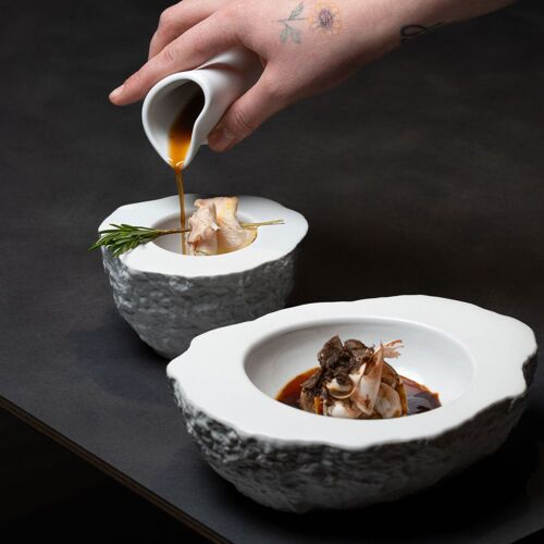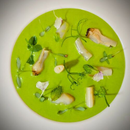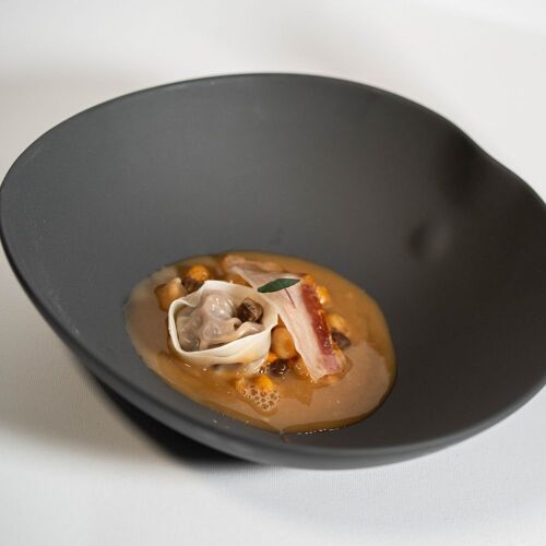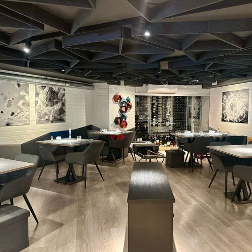 The restaurant, preceded by a terrace that is almost always full of university students, features a contemporary yet informal gastro-bar (Crisol) where you can order the daily menu as well as fun dishes designed for sharing. The restaurant’s so-called gastronomic space, with its open-view kitchen and decorative details inspired by the molecular cuisine that has lent the restaurant the second half of its name, is the domain of Alvar Hinojal. His culinary skill shines forth on three bold and creative tasting menus (Noradrenalina-Adarsa, Serotonina and Dopamina) on which every mouthful is full of delicious surprises.