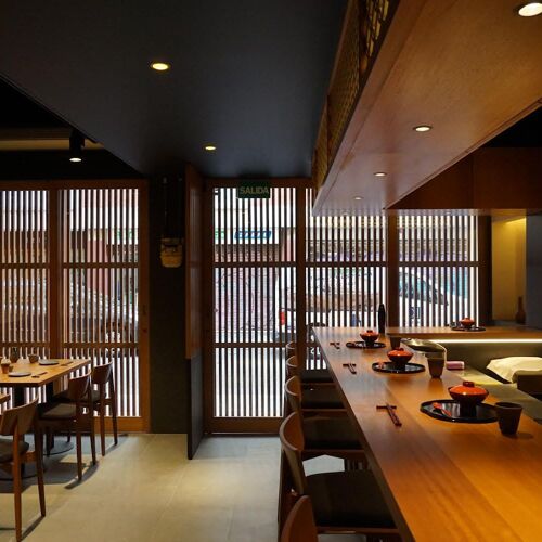 An intimate Japanese-style restaurant close to Sants railway station, featuring a bar (there are also a few tables) where guests can eat while watching young chef Yoshikazu Suto at work. The ambience here is more that of a private house in which the staff are cooking for you rather than a restaurant. The Omakase menu on offer here (which combines hot and cold dishes and is served to all guests at the same time) features highly personalised Japanese-style recipes, followed by delicious nigiri that are truly unforgettable and prepared with the best-quality fish imaginable. Additional interest here is provided by the chef’s aunt, who has created the artisanal-style crockery, and the impressive machine used to make kakigori, a traditional Japanese ice cream. One dish that particularly impressed us was the mackerel escabeche, served in two small tacos with shichimi (a blend of seven Japanese spices) sprinkled on top.