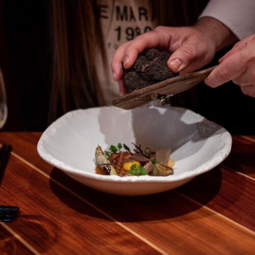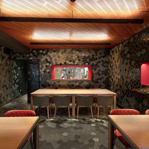 Red tuna is at the heart of everything here! In this highly original restaurant, with a particularly striking ceiling in the main dining room featuring a decor of a school of fish plus some walls adorned with scale-like tiles, there are two à la carte options (one, more Western in taste, where tuna is the main focus, and a second more Asian-inspired menu centred around nigiri, sashimi, uramaki etc) alongside interesting tasting menus (Red and Blu). Occasionally, the restaurant also organises Kaitai experiences where participants can learn first-hand about this time-honoured Japanese fish-slicing technique.