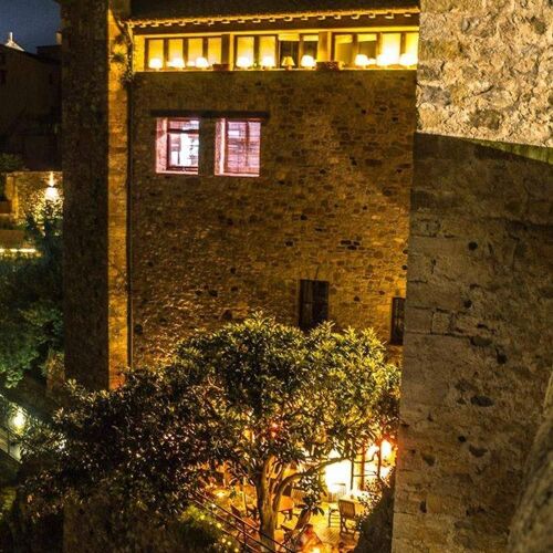Located at the entrance to the old town and with a name that is more than justified... it has a romantic terrace overlooking the imposing arcades of the medieval bridge! In its rooms, with a warm rustic atmosphere and an abundance of stone, they offer a traditional menu (dishes for two such as the Chateaubriand-style veal sirloin with mushroom sauce, or their Angus Txuleton from Mieres in La Garrotxa, aged for 30 days) and an executive-style menu with dishes of your choice. Friendly service!