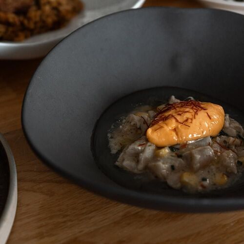 A restaurant that is well worth considering as it is never that easy finding modern cuisine at affordable prices. The restaurant, which takes its name (“a beloved woman”) from an old Catalan language once sung by troubadours, boasts a contemporary interior with a kitchen visible from the dining room and an adjoining bar so that you can watch dishes with a focus on modern fusion cooking with a strong Asian influence being prepared in front of you. We can highly recommend the carpaccio of octopus and the calamares with a fino sherry and black garlic sauce.