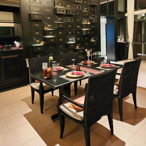 Elegantly appointed with floor-to-ceiling windows, contemporary lighting and dark wooden furnishings, Saffron also offers alfresco dining with a fantastic view. You can choose from à la carte and tasting menus. The roast duck red curry is paired with a thick sweet and spicy sauce, a fresh lychee and pineapple compote and roasted skin that excite the tastebuds. The fried softshell crab salad with lychee and passionfruit is also a must.
