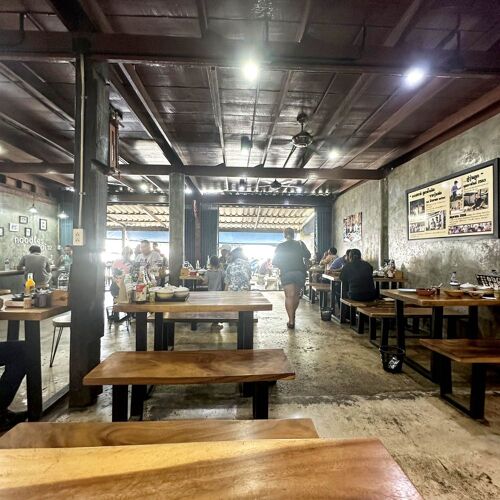 With its wooden furniture and rustic charm, this is a delightful spot for an early breakfast or lunch. The real star here is the soup with aromatic dried squid and pork ribs imparting rich flavour. Each tasty spoonful is testament to the traditional recipe.
