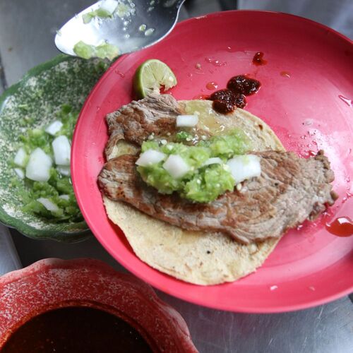 There is a reason why El Califa de León has endured for more than half a century. This taqueria may be bare bones with just enough room for a handful of diners to stand at the counter but its creation, the Gaonera taco, is exceptional. Thinly sliced beef filet is expertly cooked to order, seasoned with only salt and a squeeze of lime. At the same time, a second cook prepares the excellent corn tortillas alongside. The resulting combination is elemental and pure. Other options are few but excellent, and include bistec (beef steak), chuleta (pork chop), and costilla (beef rib). With meat and tortillas of this caliber, the duo of house-made salsas is hardly even necessary.
