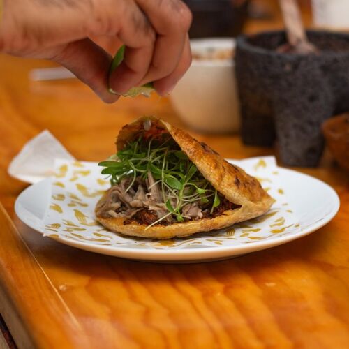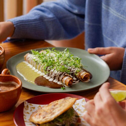 On a breezy, tree-lined street in San Miguel Chapultepec, everyone sits shoulder to shoulder at a single communal table stretching the length of two parking spaces. The convivial setting suits this unassuming restaurant, which offers an all-day menu of comforting classics that revolve largely around the comal. A single chef weighs, presses, and griddles everything to order. The gordita especial, packed with chicharron and tender, shredded carnitas, is a favorite. Late night out? Swing for the chilaquiles chamorro with salsa verde and kick it up a notch with the fiery salsa on the table. Other hits include crispy flautas stuffed with melting cheese and a picturesque enmolada covered in a sweet mole poblano. Expect a wait come weekend brunch.