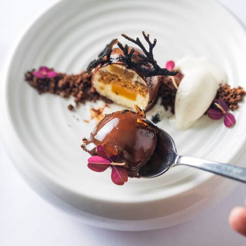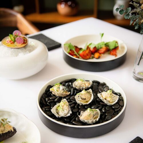 Located on the ground floor of a residential building, this restaurant could easily go unnoticed, but one bite of their contemporary Mexican cooking and you won't soon forget its address. A welcoming staff invites you to take a seat and peruse their menu or opt for one of two tastings. A plantain molote with a bit of pickled onion is a nice opener before savoring the flavors of an aguachile in a cuttlefish ink broth. Tostada de camarón is a spot-on treat, then pescado zarandeado delights with its crispy skin. To finish, arroz con leche is comforting and classic.
