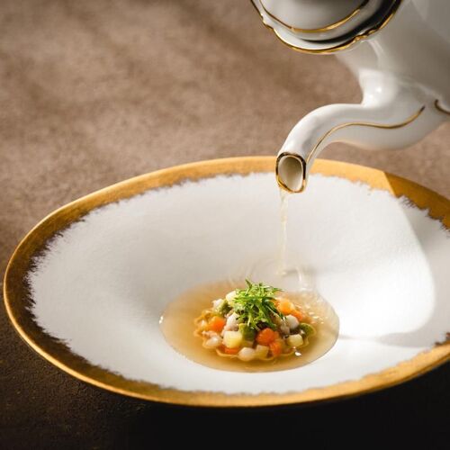 "Each recipe by the chef tells a story connected to local producers, who supply everything from cheese to meat. Game of exceptional quality and homemade cured meats come from the chef’s father, a hunter. To support the community, candles made from used oils by an association involving people with disabilities are used. The restaurant also offers team-building programs to foster deeper connections in a setting of well-being and relaxation."