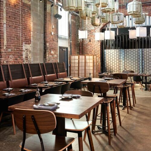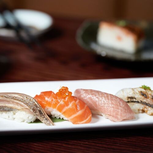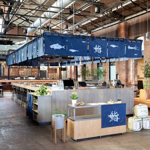 Temaki Den is nestled within The Source Hotel + Market Hall. It's an open space, tucked among other vendors, and a dark color palette lends a modern, if moody, feel to this spot. As the name suggests, it is all about temaki, or handrolls, though they do feature aburi (flame-seared) nigiri as well. Begin with broccolini goma-ae, a nicely balanced dish of blanched bright green broccolini dressed in a sesame dressing, before moving on to temaki, available à la carte or as a set. Rolled for guests, one at a time, the Scottish salmon belly with yuzu kosho and crispy shallots is a standout. Don't skip the eggplant nigiri, seared and caramelized with miso to deliver a buttery, rich and slightly sweet knockout flavor.
