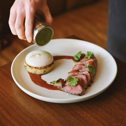 Tucked inside the Gravity Haus hotel in the LoHi district, step past two sets of doors to find this moody-eclectic spot with a vintage vibe and a contemporary, plant-forward menu. Whether you order a la carte or choose a customizable tasting menu, expect bold and creative dishes with plenty of personality and character. Take the butternut squash soup that's far from a typical bowl. Here, butter-poached Dungeness crab takes center stage in a bowl with a ginger and pepita crumble and sunchoke chips, plus a tableside pour of soup. Salmon is sided by a crispy fennel cake with sunchoke puree and roasted fennel slices for a beautiful, tempting plate. Dessert impresses with honey semifreddo, Marsala foam, toasted oats and honeycomb brittle for a distinctive finish.