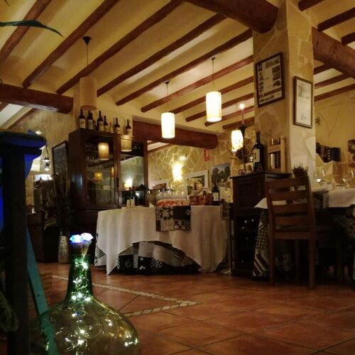 A restaurant run by married couple Pere and Pepa, with the former in the kitchen and the latter in charge of the dining room. Located along the avenue leading into town from Jumilla, it boasts a terrace at the entrance and an interior with two floors decorated in a rustic, contemporary style. On his à la carte and tasting menu, Pepe focuses on regional and a more modern take on Mediterranean cuisine. His aim is to rediscover the flavours of inland Alicante province via an impressive selection of rice dishes (the rice with rabbit, snails and truffles is a must!) and enticing specialities such as the tenderloin with foie gras, apple and port wine sauce, and the traditionally roasted shoulder of goat. Themed food days dedicated to truffles (March) and suckling pig (November) are also organised here.