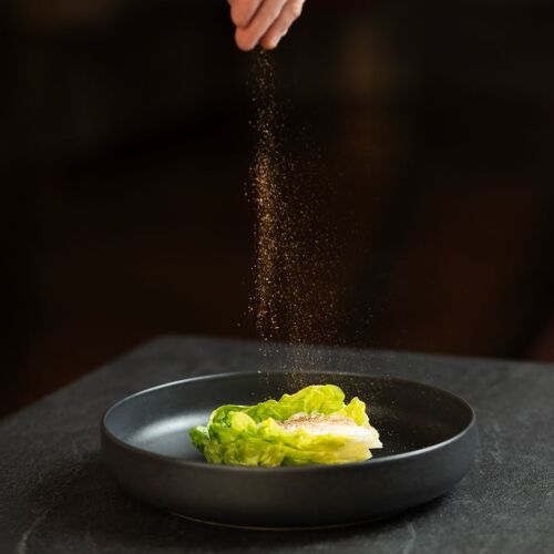 The couple at the helm, with Paco Castelló at the wheel in the kitchen and Gabri Tarín in charge of the dining room, declare themselves to be 100% Mediterranean, so that gastronomic culture is evident in every dish. In this small restaurant, located in a pedestrianised street in the old town (the area known as La Ciudad Ducal), you will find a proposal that revolves exclusively around surprise menus (Mercat, Ona and Ona Cuina Oberta) that change daily, depending on the market and always giving a great deal of prominence to fish and vegetables. We have loved their tiger nut ajoblanco with cherry granita, and the vegetable carbonara!