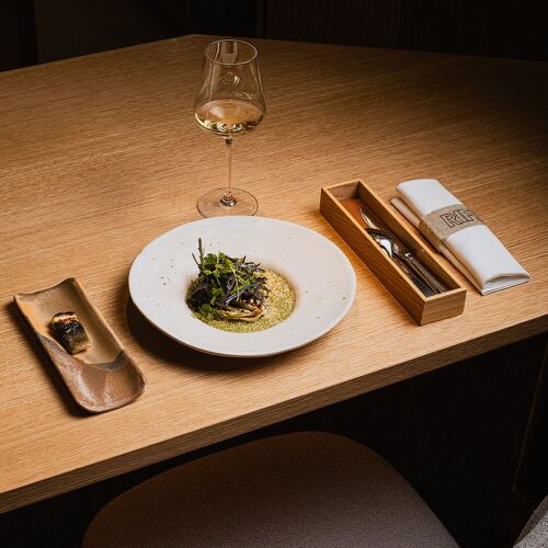 German chef Bernd Knöller considers himself Valencian at heart and is at the helm of this restaurant where he constantly reinvents what he offers, which has led to a more contemporary and fun ambience that includes a kitchen that overlooks the dining room and is surrounded by a counter where you can watch dishes being prepared in front of you as you eat. Globe-trotting chef Bernd Knöller has moved onto an important stage in his career which sees him interacting with his natural surroundings. This has led to him making a name for himself on the local food scene through his occasionally anarchic and always liberated vision of creative Mediterranean cuisine, which is available via a fixed price à la carte and two menus – one available at lunchtime, the other a tasting option. On these, you can enjoy rice dishes that showcase his love for his adopted region, fish and seafood that he sources at the local fish market, and unique dishes such as sweetbreads and onion (the lightly textured beef sweetbreads are served with a sweet roasted onion jus and a petal of pickled onion).