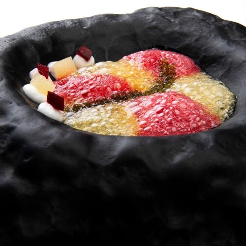 This small restaurant, located along a narrow street just a few metres from the Plaza Parroquial, provides the perfect opportunity to enjoy a true gastronomic experience. Rubén Miralles, the Castellón-born chef at the helm in the kitchen, showcases contemporary cooking that combines different trends with a non-zealous approach along with traditionally based dishes featuring top-quality ingredients. His aim is to take guests on a culinary journey from the local area (note his reinvented take on traditional recipes) to more globally inspired flavours that include forays into the cuisine of Arabia, Peru and Asia. His creative cooking is centred around four menus: Debé (lunchtime, midweek); Producte (a seasonal option showcasing local market gardens and the sea); Amarant (a vegan tasting menu); and Rubén Miralles (the most gastronomic) – the last two of which need to be booked ahead of time. Dishes we particularly enjoyed for their delicate touch and flavour included the vine tomatoes with natural and fermented salmorejo, and the espardeña (sea cucumber) with a boletus foam, “majado” and egg yolk.