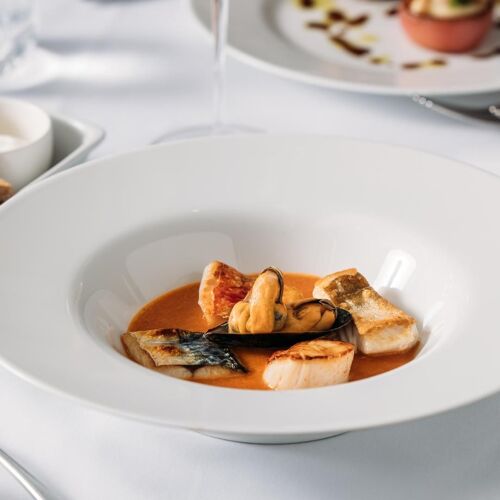 Imposing granite pillars and neatly laid tables help to bring an air of classical elegance to this restaurant inside the Hotel Meudon. The dining room overlooks impressive mature sub-tropical gardens, which also contribute to the all-round lovely setting. The concise, daily changing menu is Cornish at heart, especially when it comes to seafood. Dishes like Mylor crab filo tart are understated yet well-executed and wholly enjoyable.