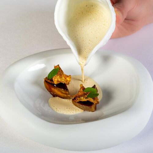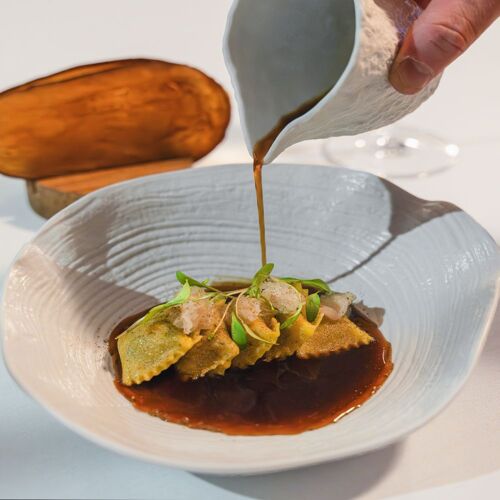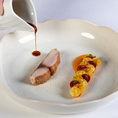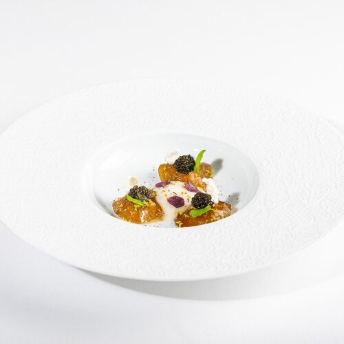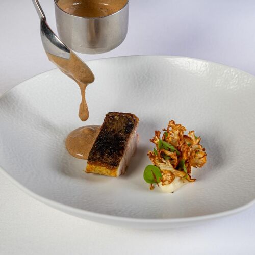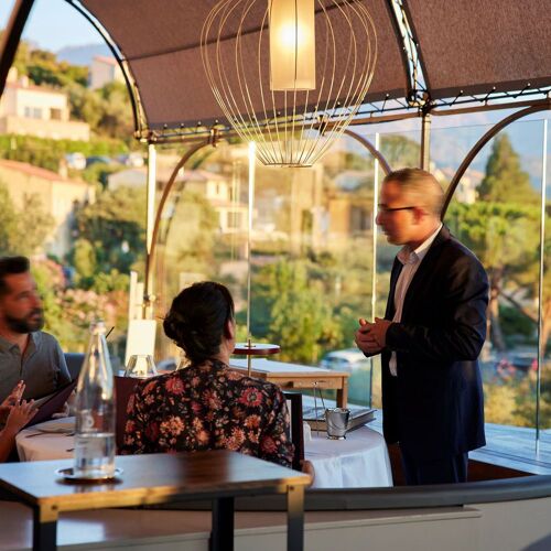 Lumio, a village of Haute-Corse, is the quintessence of light and flavour... The chef conjures up subtle, delicious fare, enhanced by creative touches and ever respectful of the fine ingredients in which the island abounds. Examples include poached langouste served with a shellfish butter, sabayon of shellfish and tomato-flavoured bisque or a 48-hour confit of goat with a Meaux mustard meat gravy, curatella and lemon paste. The contemporary interior leads onto a pretty terrace, providing the perfect foil to sample pared-back cuisine drenched in the flavours of the Mediterranean and the land of Corsica. Friendly, attentive service. Prolong the fine dining experience with a night at the hotel overlooking the Bay of Calvi.