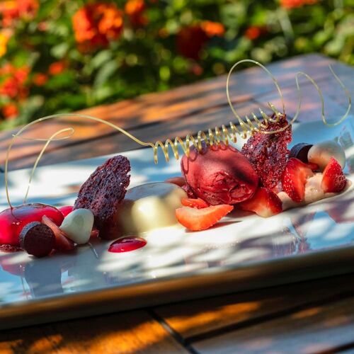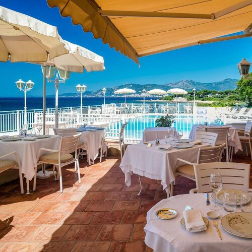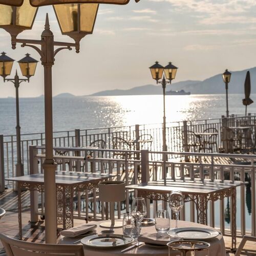 A throwback to another time in this establishment with a slightly old-fashioned atmosphere, where Mediterranean cuisine with Corsican influences is served on the very pleasant terrace facing the sea. Lobster, fish from small-scale local fishermen… and fricassee of lobster with buttered capellini, the house speciality. The wine is served by the glass from magnums, which is a nice touch! More limited menu at lunchtime.