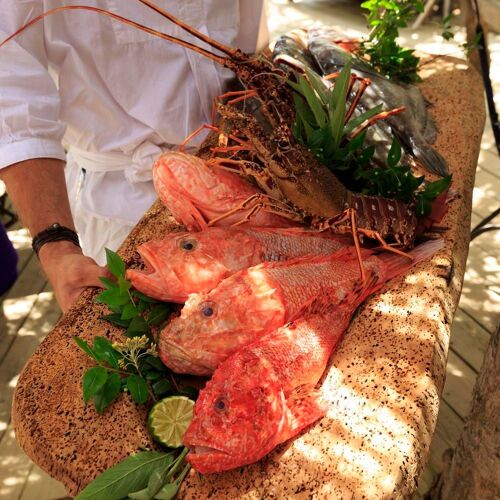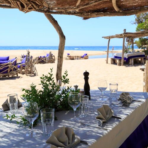 By the prettiest beach in the Domaine de Murtoli, this restaurant with an exceptional decor inspired by fishermen's wooden huts is well worth a visit. Locally caught fish, grilled crayfish, veal, beef or lamb reared on the estate: diners can tuck into dishes such as John Dory à la meunière, courgettes stuffed with caponata and a rock fish jus. The pasta dishes make for a deliciously indulgent option. To access this highly exclusive property, it is necessary to book – you will then also be able to head for the beach with a deckchair and towel after your meal.