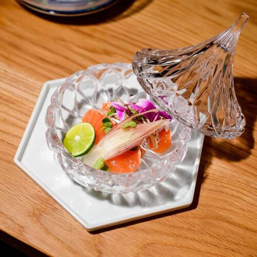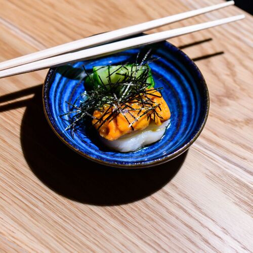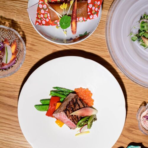 Located a few steps below street level, this restaurant from Chef Minoru Ogawa has a minimalist decor. The counter faces the sunken kitchen where an eight-course Kappo-style tasting menu with a focus on Wagyu woven with seafood is the main event. The kitchen is exacting when it comes to flavors, but their style is approachable. Go ahead and add caviar and uni if you're feeling flush, but you won't need them to feel well taken care of here. Wagyu tataki is lightly seared, tossed in an egg yolk soy sauce and topped with wasabi foam, then toro is set atop garlic ponzu and sided by a dashi-poached cherry tomato. Wagyu miso soup with rice and pickled vegetables is served as a set for a final course that feels like a warm hug.