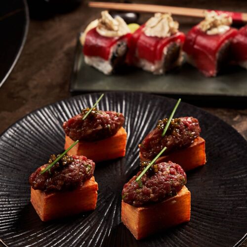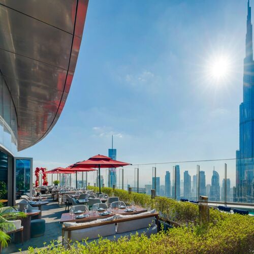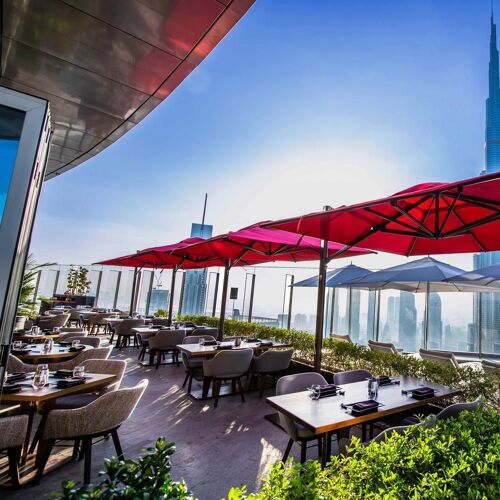 The Dubai outpost of this fashionable restaurant group is set on the 54th floor of the Address Sky View Hotel. It comes with a party atmosphere and a bird’s eye view over the city from its super terrace, and service is friendly and professional. Contemporary dishes have influences ranging from a mix of Mediterranean, such as fried calamari and spinach rigatoni, to Japanese classics, such as nigiri and beef kushiyaki.