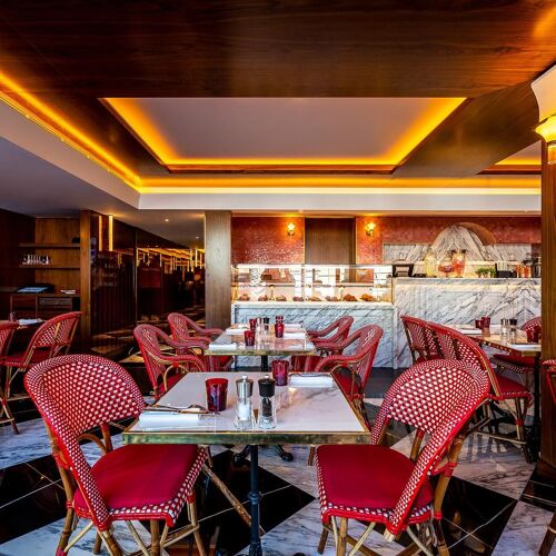 After launching at Louvre Abu Dhabi, in 2023 it was the turn of Downtown Dubai to welcome its own branch of this famous Parisian restaurant. The plaques by the red carpeted entrance advertise all the famous faces who have passed through its various doors – so if you want a souvenir of your own glamorous experience there’s even a photo-booth downstairs. As expected, the menu celebrates classic French cooking.