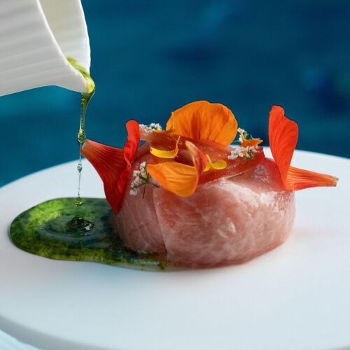 It's not often sharks and stingrays swim past you as you dine but, then again, there aren’t many restaurants with huge windows looking into an aquarium of 65,000 marine animals. From the moment you descend the marble spiral staircase into this unique restaurant at the Atlantis, you’ll find yourself transfixed and fully immersed. Each course of the ten-course tasting menu tells a story of explorers who have navigated around the Atlantic Ocean; many of the dishes are finished off at the table with an added dash of theatricality.