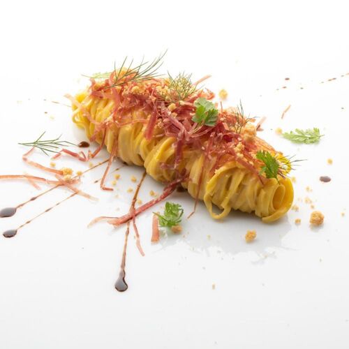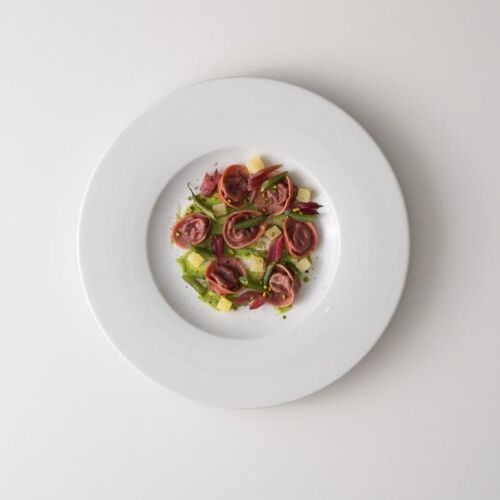 Surrounded by verdant landscapes, this attractive restaurant with a pleasant outdoor dining space is functional in style due to the use of simple materials such as wrought iron and wood, and as such boasts a distinctly minimalist style. A continual quest for cuisine that is both contemporary and rustic in flavour is reflected in owner-chef Vezzani’s reinterpretation of local recipes, which he enhances with interesting combinations and produce grown in the restaurant’s own biodynamic kitchen garden. The restaurant offers five surprise tasting menus: “Gli Intramontabili” (a tribute to the region, often with pairings of the best Lambrusco wines), “Oltremare” (inspired by the sea), “Terramadre” (a regional focus), “Cielo” (a journey between land and sea), and “Hortus” (vegetarian), all of which demonstrate a playful use of flavours and combinations with a keen focus on seasonal ingredients.