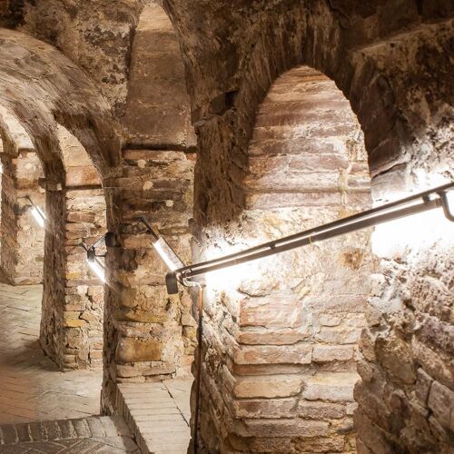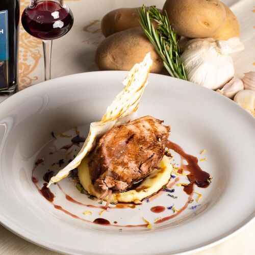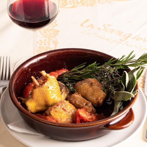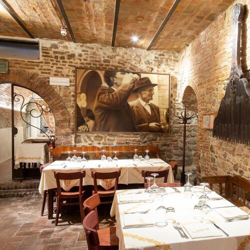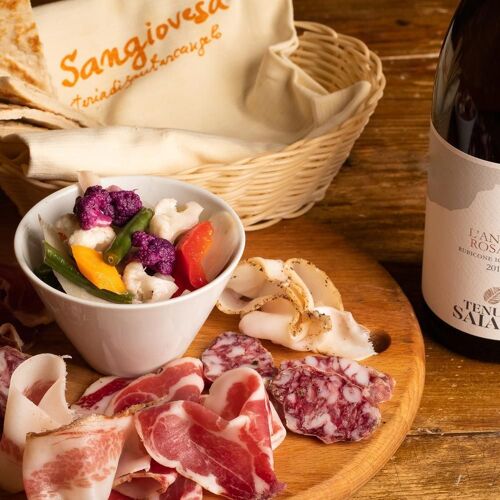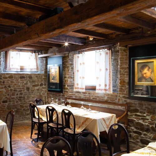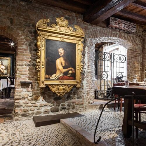 This simple and informal inn is the perfect setting in which to get together with friends, sitting around small tables laden with piadine flatbreads and slices of ham and salami. There’s also a restaurant here – a network of small rooms laid out in the cellars of an old palazzo – where portraits of local historical characters can be made out in the subtle lighting. Here too, the cuisine is inspired by the region and its traditions, with top-quality ingredients (cured hams, meat, oil, wine, vermouth etc) all coming from the restaurant’s own farm and estate.