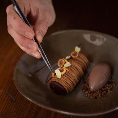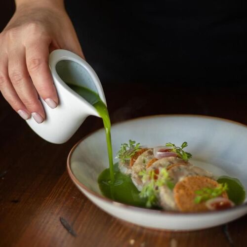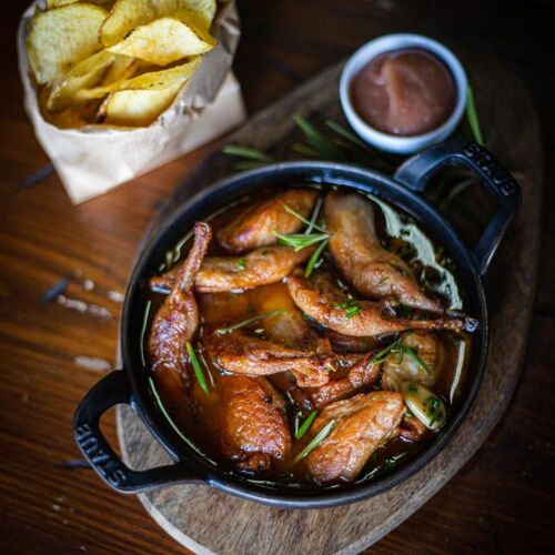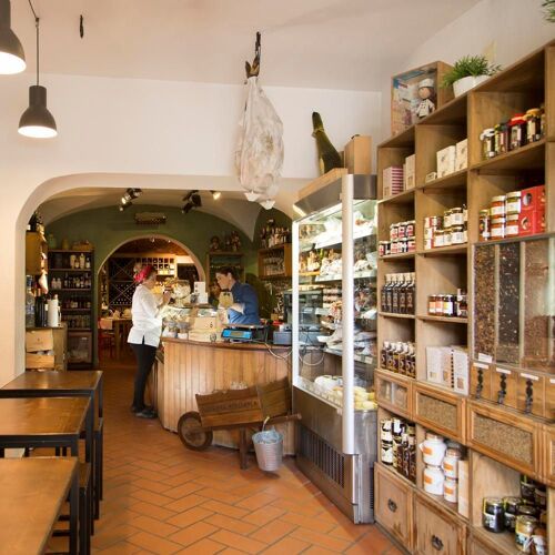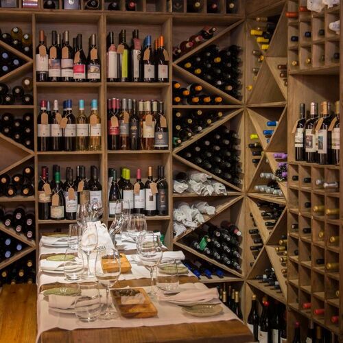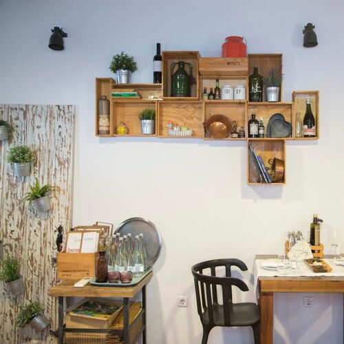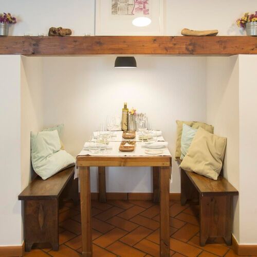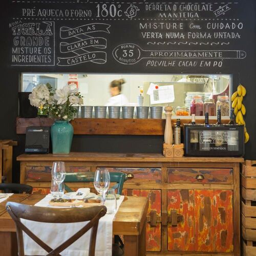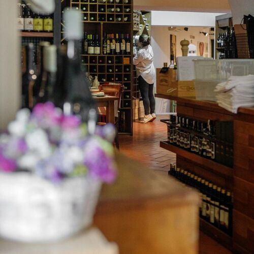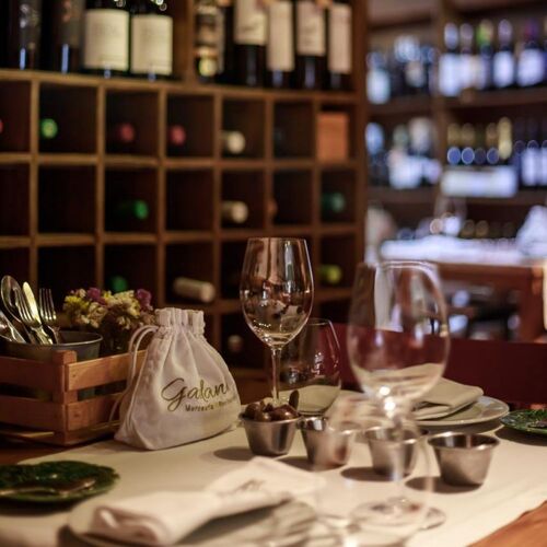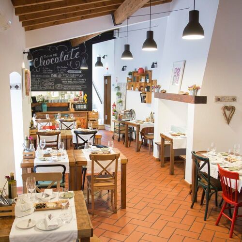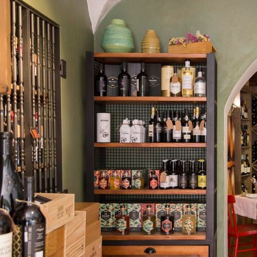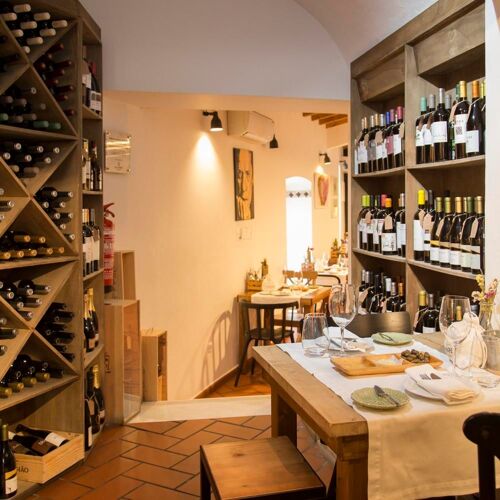 This centrally located restaurant with a welcoming feel comes as something of a surprise, as it is accessed via a bar- gourmet shop that has the feel of an authentic grocery store. In the rustic-contemporary dining room, featuring exposed wood beams and even a table for two in the fireplace, choose from an extensive menu combining regionally inspired dishes (crispy prawns, scrambled eggs, different black pork recipes) with those with a more international feel, all of which are prepared with a subtle, modern touch. Cheese, sausages and wine from the Estremoz area are available for purchase in the boutique.