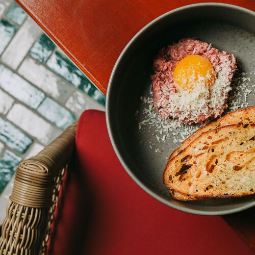 Following on from the success of their restaurant in Comporta, chef Bruno Contreras decided to open another space in the oldest city in the Alentejo, in the grandiose setting of the 14C Palace of the Dukes of Cadaval, now embellished with a cheerful decor of vibrant colours. The menu comprises dishes designed for sharing as well as “petiscos” such as the delicious empanadas filled with lamb and a seaweed sauce, the enticing Alentejo tortilla with caramelised onion, and the unmissable choco sautéed in butter, accompanied by organic chickpeas and coriander. Make sure you also try some of the innovative cocktails here!