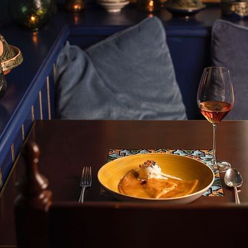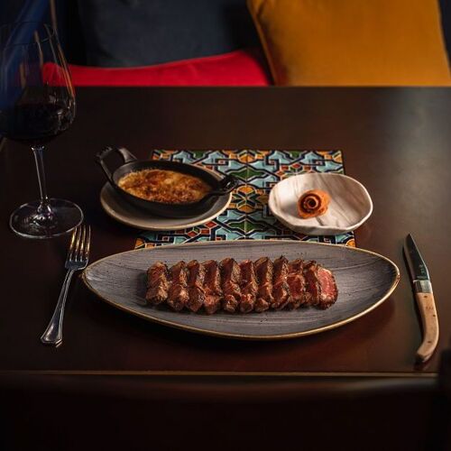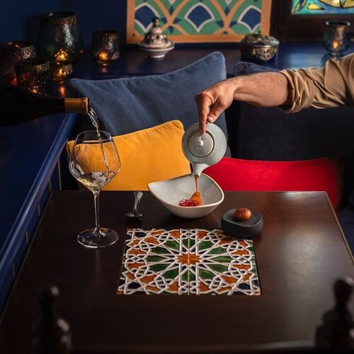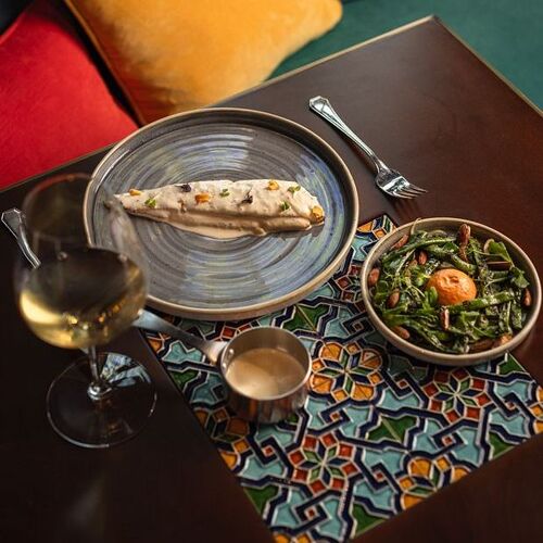 Situated in the luxurious Vila Vita Parc, specifically in the Clubhouse. The décor here is a spectacle in its own right, transporting us into the world of One Thousand and One Nights, with high ceilings, windows adorned with Arabic-inspired mosaics, and an ambience in shades of blue and gold. However, the real surprise lies in its cuisine, where you can see the exceptional quality of the products displayed in a glass case, including fresh fish and dry-aged meats. Striking-flavoured dishes emerge from the fully open kitchen at the centre of the room, such as the scallop served with a mild hazelnut purée, pickled horseradish, and a touch of acidity from a calamansi vinaigrette, as well as the fillet of lamb bathed in a sesame glaze, which pairs beautifully with the potato gratin garnish.