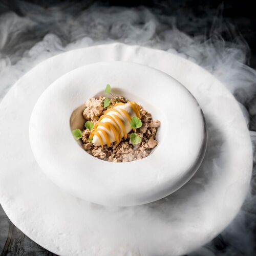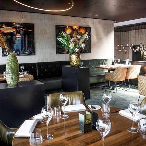 The view you have here of Almere's marina as the boats sail away is quite something to behold. The lounge terrace is a great place to sit, but equally charming is the contemporary decor indoors. The dishes, which showcase vegetables, are brimming with creative enthusiasm. They are elaborate, even daring at times, and always display technical mastery. There are plenty of delicious vegetarian options on the à la carte menu should you wish to avoid meat and fish.