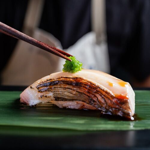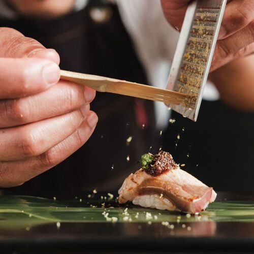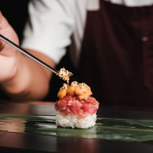 From the same team behind Tori Tori and Domu, this casual concept delivers something sleek and simple—a standing sushi counter. It's not a gimmick, it's designed to be fast and fun, and it's a perfect place to bring friends. Be sure to arrive promptly, since you're given a set time slot and you'll be whisked into the space at the start of yours. Once there you'll select a dozen pieces from the selection of nigiri, seared nigiri and hand rolls. Some of the best bites include a sweet Hokkaido scallop finished with briny uni from Tasmania; seared sea bream with uni butter, lemon and sea salt; and spicy Faroe Island salmon with edo sauce, cucumber and fried garlic rolled in crispy nori. Dinner is rounded out with miso soup made in house from the bones and trimmings of the day.
