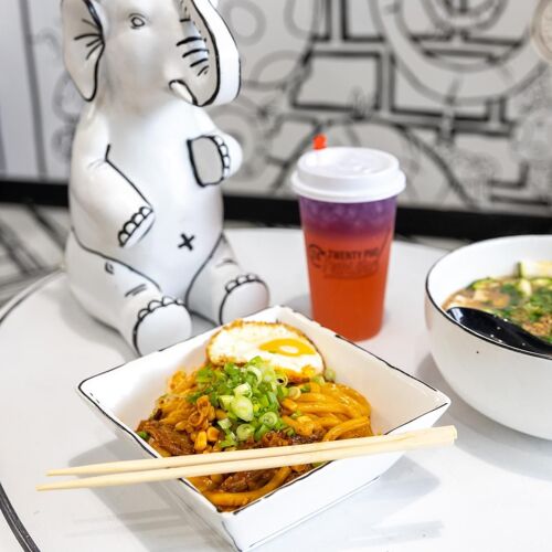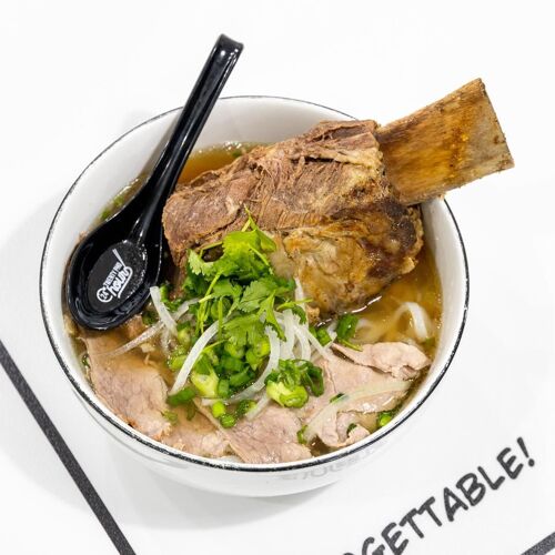 It's not just pho, and they're not open 24 hours, but no matter, since this place is popular all the same. Expect to line up outside during busy hours, though the staff is very efficient and soon enough you'll be inside the black-and-white dining space. Peruse the broad noodle-based Asian menu that includes a stir-fried section in addition to appetizers and more. As the name suggests, there is indeed pho, and the broth is impressive. Go for the short rib pho to get a side of drama—the bone sticks out of the bowl—and falling-off-the-bone tender meat. From there, your meal might take a Korean turn with kimchi noodles or the Korean fire noodles, which despite their name, don't require a heat warning.