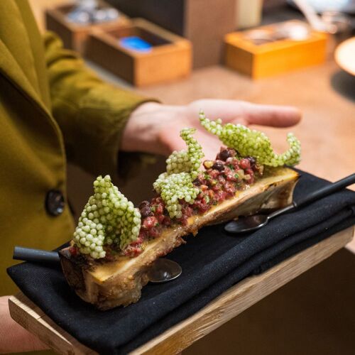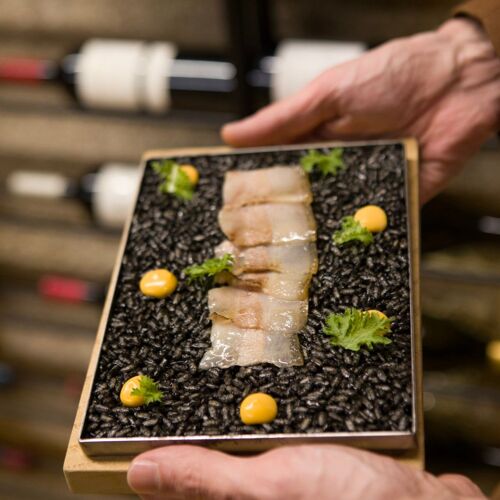 Located in the heart of the “casco vello”, just a few steps from the Concatedral - Basílica de Santa María de Vigo, this restaurant stands out for its setting in an old renovated manor house that dates back to Templar times and is now a multi-purpose venue that includes a terrace, event spaces, a luxurious cocktail bar etc, plus a mix of tradition (note the stone walls) and design. The cuisine here bears the signature of chef Pepe Solla whose focus is on greater simplicity and individual ingredients compared to his award-winning one-Michelin-star Solla restaurant. His Josper oven takes centre stage as showcased by his standout grilled fish dishes, including his Josper-grilled John Dory. The chef’s table in the kitchen enables guests to watch the chefs at work at close quarters!
