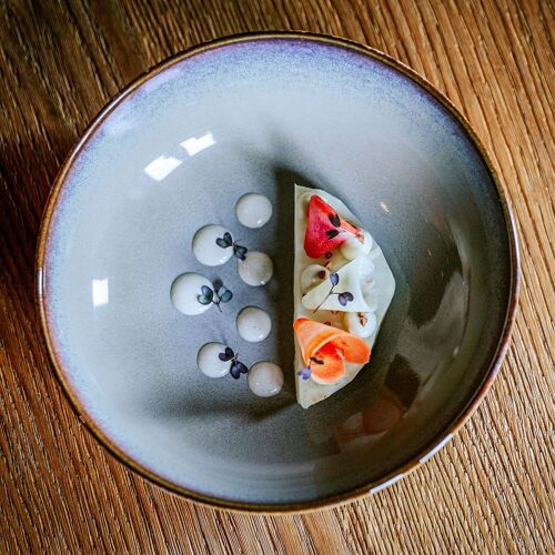 This pretty half-timbered village house is home to a 5-table only dining room, with colourful walls and an open kitchen. Here, the chef is in charge of everything, from the food (modern, carefully-prepared, tasty) to…the service ! The approach is heartfelt and demands respect. On the plate, seasonal, local, often organic produce, with delicious bread from a local baker.