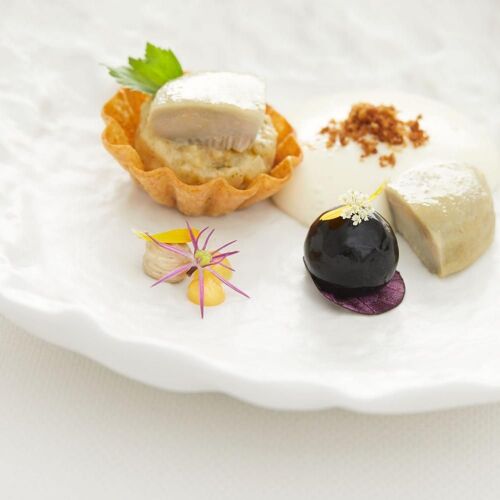 This secret garden lies opposite the small railway station. The welcoming restaurant is the den of a youthful team, led by an ambitious, talented and seasoned chef, Gilles Leininger. In addition to his signature “artichoke” recipe, which won a prize at the 2019 Bocuse d’Or competition, he crafts dishes that keep pace with market availability and his inspiration: roasted scallops, Jerusalem artichoke and truffles; turbot in a Tom Yam sauce; squab and duck foie gras pie… The other secret of this contemporary-styled establishment is its exquisite leafy patio in the back garden.