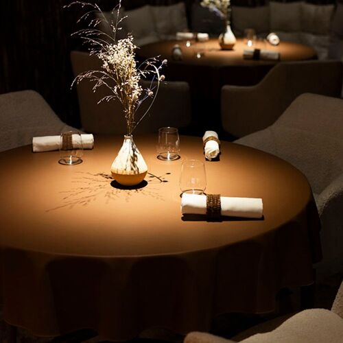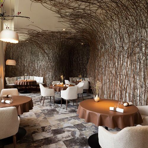 A former officers' mess, this mansion standing proud next to the Porte des Moulins is now a charming restaurant, designed and set up by chef Laurent Petit. Both the name and decor of this elegant property surrounded by a large vegetable garden pay homage to the tradition of basket-making in Fayl-Billot – the birthplace of this champion of ingredients from Lake Annecy. The carte blanche menu devised by Valentin Loison (the chef from the Jura previously worked at Le Clos des Sens and Mirazur) is creative and on point, drawing inspiration from foraging (polypody), garden vegetables, local livestock (matured Black Angus beef), Saône fishing (carp ventrèche, matured pike-perch, catfish) and hunting (roe deer). These fine, well-balanced dishes are enhanced by sommelier Anaïs (partner of the chef), who oversees things front of house with professionalism and warmth, dispensing judicious wine recommendations.