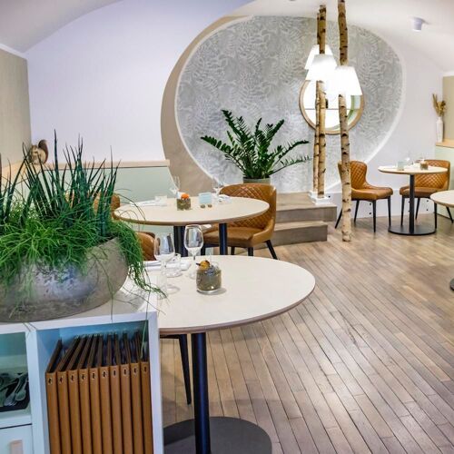 In the heart of a rural village, two brothers, Mickaël and Morgan Emo, have enthusiastically treated the interior of this former winegrower's house to a makeover in the zeitgeist. The chef regales diners with deftly crafted, appetising recipes, like carpaccio of scallops with celery or squab in truffles, squash and madeira sauce. Splendid wine cellar and knockout lineup of exceptional vintages by the glass.