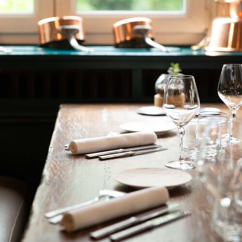 In a modern bistro decor, the young chef-patron concocts neat and flavoursome cuisine that is in tune with modern tastes; his presentations are original and elegant, for example the venison pâté with foie gras en croûte, the calf sweetbread with meunière sauce, and the savarin cake with whipped cream and citrus fruit syrup. Given the quality of the cuisine, it is hardly surprising that the restaurant is frequently fully booked.