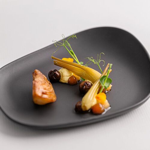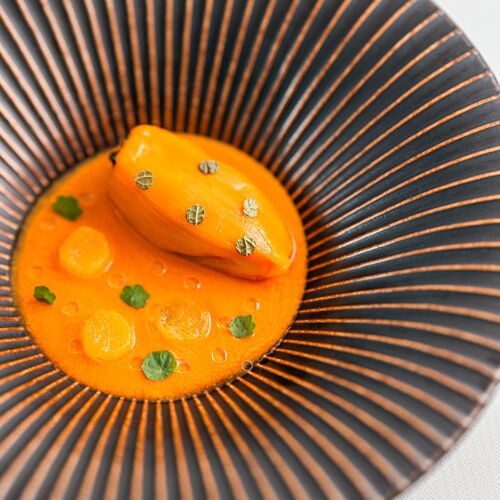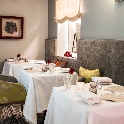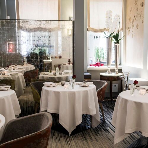 Formerly maître d' at Au Crocodile, the owner of this place officiates in a contemporary and elegant setting that beautifully sets off the refined cuisine made with first-rate ingredients. The surf and turf-inspired "choco-beef" tartare with Kristal caviar and quail egg may be one of his most original dishes, but that's no reason to pass over the crêpes Suzette prepared in time-honoured tradition at your table, accompanied by vanilla ice cream made to order – delicious.