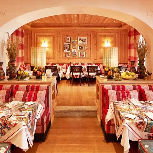 In the charming Hotel Walther, one of Pontresina's most emblematic hotels, this lovely Trattoria has an authentic, lively atmosphere and a stylish rustic feel. The appetising menu embraces all regions of Italy, with delicious pasta as the centrepiece and the focus firmly on flavour and freshness. Friendly Italian service and a good selection of wines.