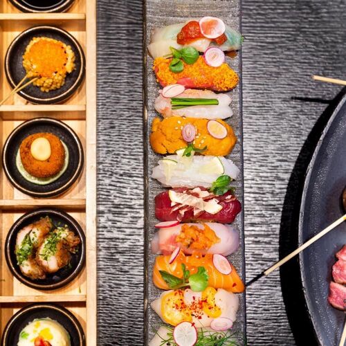 Japan House promotes all things Japanese, so it’s appropriate that upstairs there’s a stylish, buzzing restaurant celebrating the country’s cuisine. The open kitchen is the focal point of the room, which offers both counter and table seating from which to enjoy the extensive selection of Japanese food. There’s a wide range of sushi, but it’s the skewers from the robata charcoal grill that are the highlight – such as asparagus wrapped with bacon or chicken and shiso meatballs.